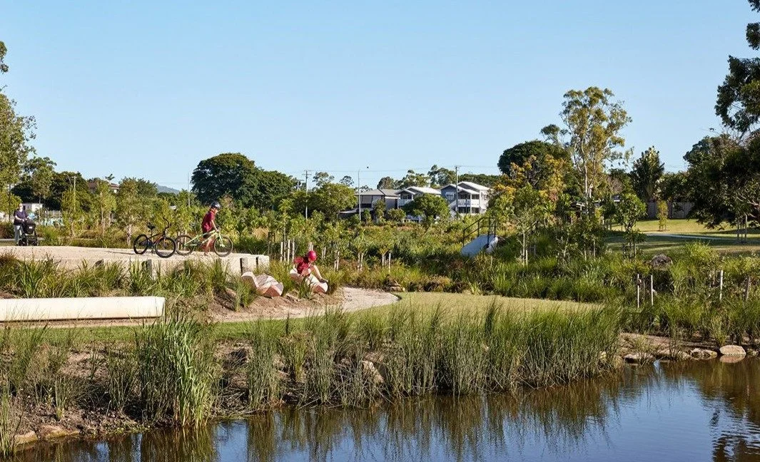 Hanlon Park/Bur’uda, once a concrete-lined drain is now a naturalised waterway through an inner suburb of Brisbane. Tract Consultants, the lead landscape architects, will work with a team from QUT to assess its landscape performance. (Photo: Christopher Frederick Jones)