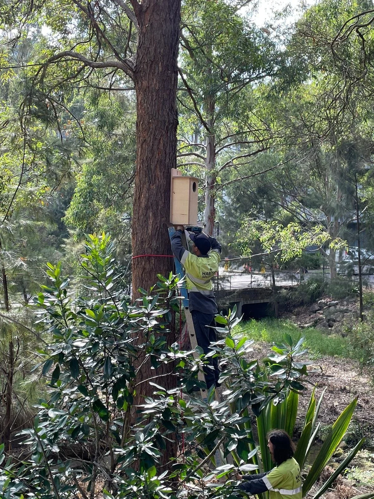 Habitat Solutions has also recently completed a program to install nesting boxes at a university campus riparian creekline, providing critical nesting spaces for local fauna. Researching and monitoring of these nesting boxes will continue to assess the impact they are having to increase local populations.