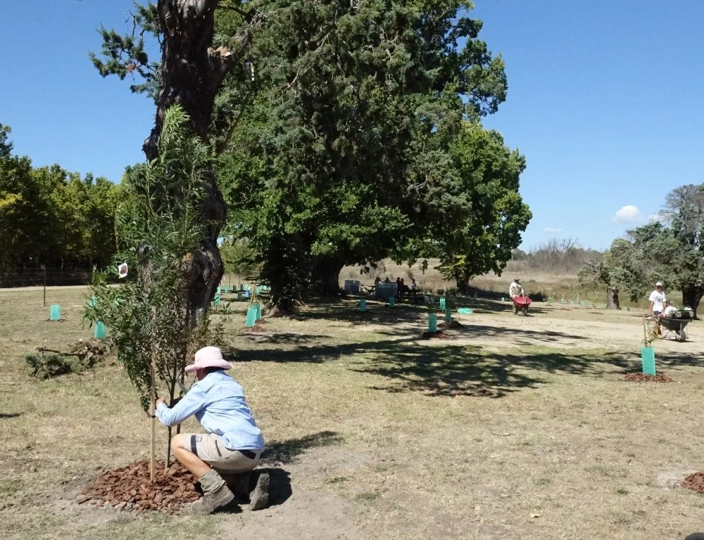 Noel also prepared the planting plan for the picnic area on the eastern side of the Reserve. The design incorporates native evergreen trees together with deciduous trees to provide shade to the picnic area in summer and sunshine in winter. As the trees mature, they will frame views of the picturesque lagoon and abundant water birds.